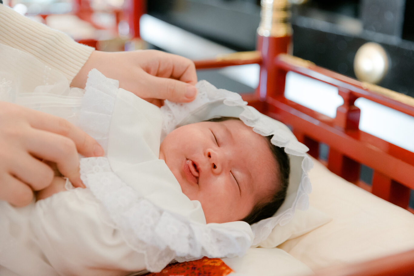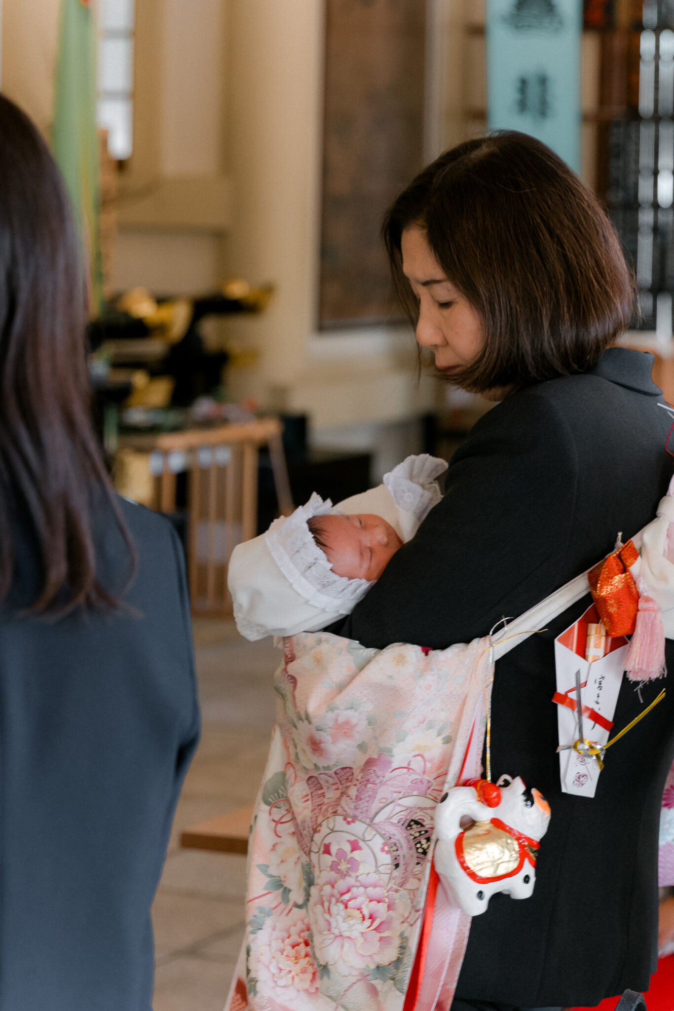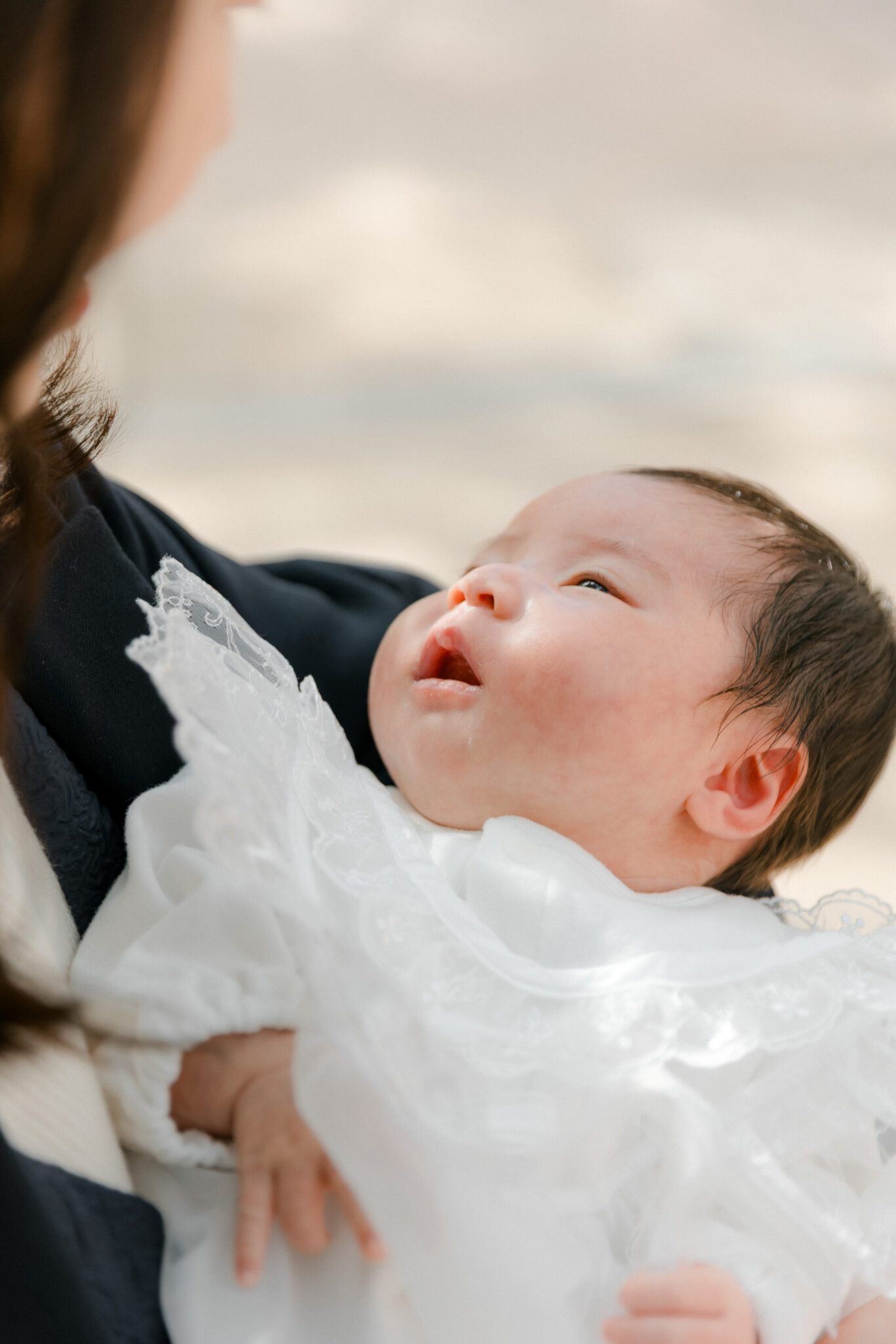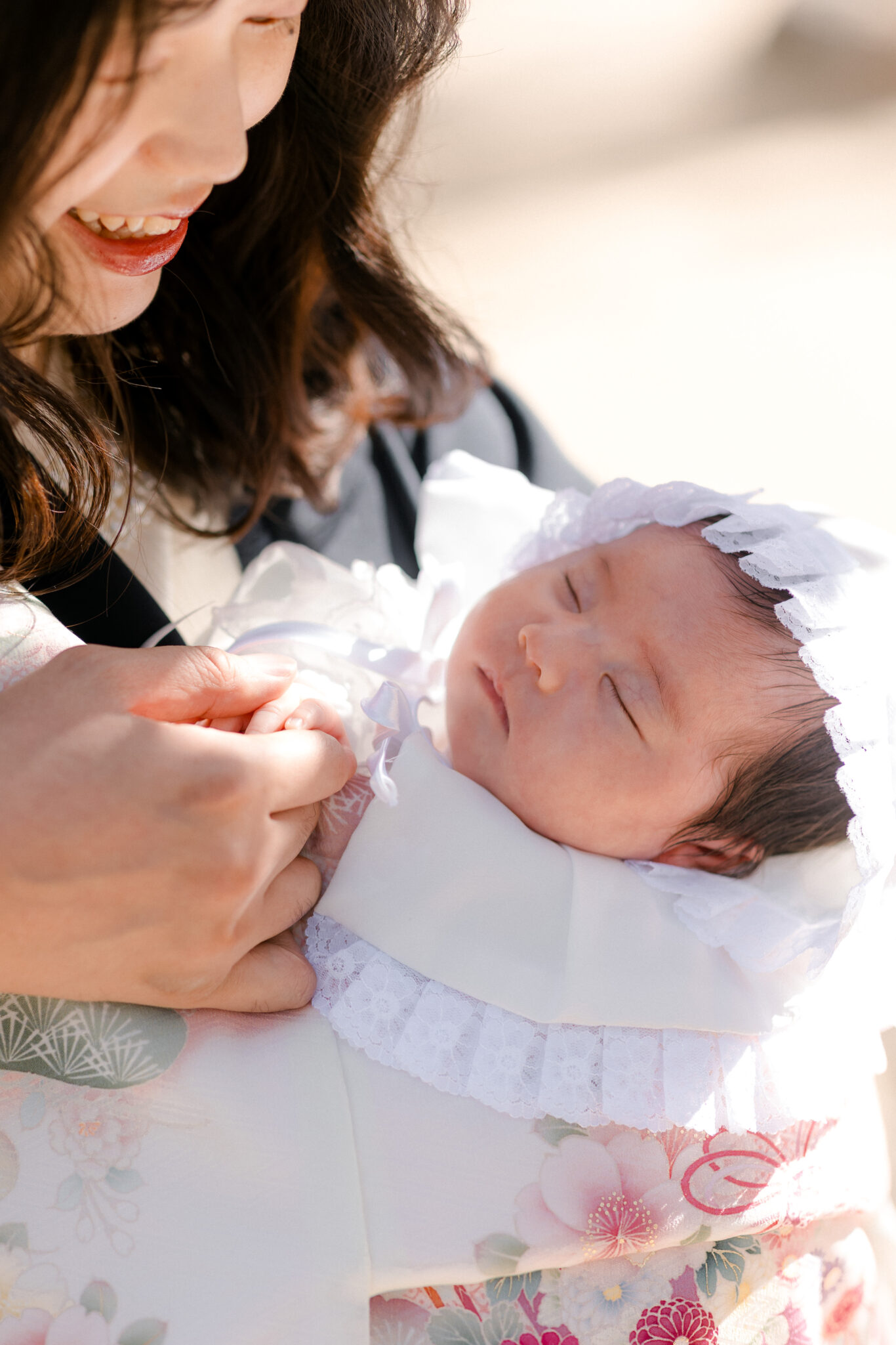 お宮参りの記念撮影と、この時期にしかみられない可愛さも残せるように